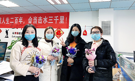 3月7日一大早,當(dāng)朝霞的女神們剛剛走進(jìn)公司,迎面而來的是一捧鮮花、一盒巧克力、一箱水果。而男同胞們只能羨慕的搖頭,默默擦肩而過。