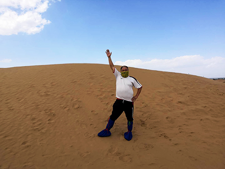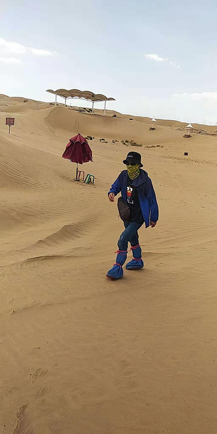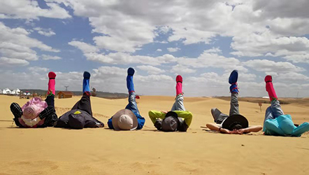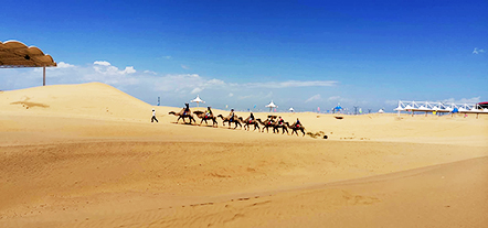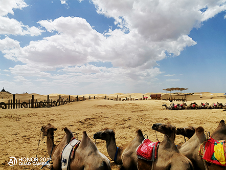 黃沙漫漫,一望無際的金黃,映入眼簾,腳踏黃沙,頭頂藍(lán)天,這是一種前所未有的放空,心情異常平靜,無一絲波瀾。騎上駱駝,它們自動排成一排,代領(lǐng)我們領(lǐng)略這個神秘的地區(qū)。