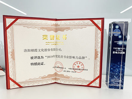 在眾多參評(píng)企業(yè)中,洛陽(yáng)朝霞文化股份有限公司脫穎而出,榮膺“2019年度民營(yíng)書(shū)業(yè)影響力品牌”大獎(jiǎng)。