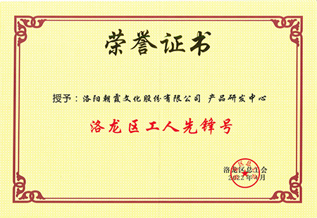 本次表彰大會(huì)上,洛陽朝霞文化股份有限公司產(chǎn)品研發(fā)中心被授予“洛龍區(qū)工人先鋒號(hào)” 榮譽(yù)稱號(hào),董事長(zhǎng)張振民同志被授予“2022年度洛龍區(qū)五一勞動(dòng)獎(jiǎng)?wù)隆薄?/span>