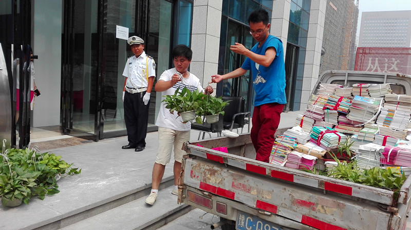 最后是綜合辦和排版部。因所有車輛都已滿載而去,他們只能耐心等候車輛返回。而此時,新辦公區(qū)那邊卻是忙得不可開交:馬不停蹄地卸車,腳不沾地地向樓上運送物品……