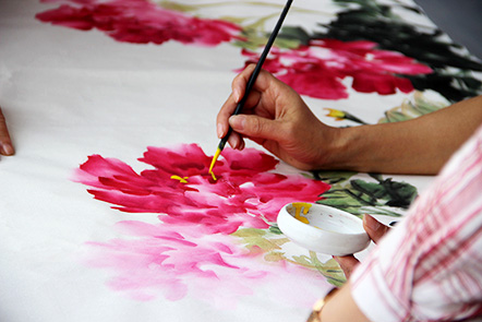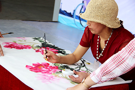 書法家李巧粉女士現(xiàn)場創(chuàng)作牡丹花并贈與朝霞文化黨支部代表。