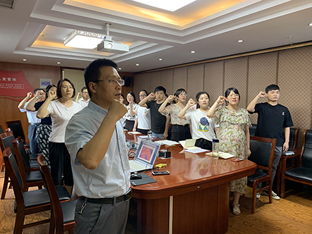 所有黨員起立,重溫入黨誓詞;誦黨章(節(jié)選)
