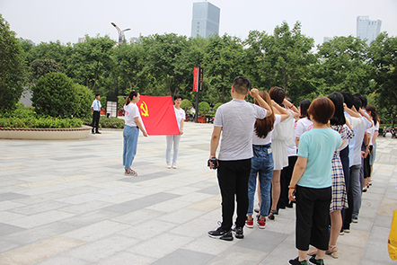 隨后,在黨旗的引領下,黨員們走上正大廣場,面對黨旗,黨員們再一次舉起自己的右手,莊嚴宣誓。 宣誓時,黨員們激情澎湃,聲音洪亮,久久回蕩。宣誓是一種形式,更是一種激勵,一種鞭策,一種對信仰的強化,激勵我們的黨員努力向前!
