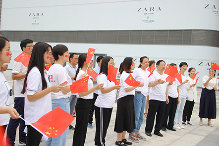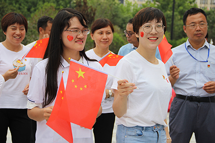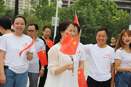 在唱紅歌《我和我的祖國》時,參加活動的黨員、志愿者們揮動小國旗、臉頰上心型國旗,相映成趣,吸引過往的群眾參與其中。歌聲激蕩,紅歌的演繹,就是對革命傳統(tǒng)的集體重溫,就是喚起我們的紅色記憶,珍惜當下來之不易的幸福生活。