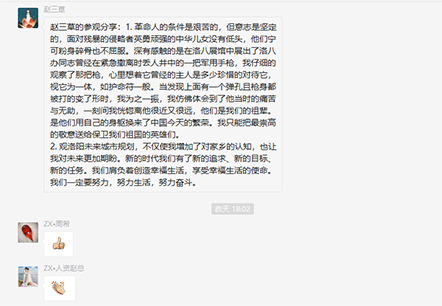 通過此次參觀,讓大家更完整的回顧了洛陽城市發(fā)展的演變歷程,并對未來的美好生活進(jìn)行了規(guī)劃展望,大家紛紛表示:未來的美好生活需要我們這些生長生活在這座城中每個(gè)人的努力奮斗,作為黨員,更要從自身做起,發(fā)揮黨員作用,為建設(shè)更美好的洛陽出力獻(xiàn)策。